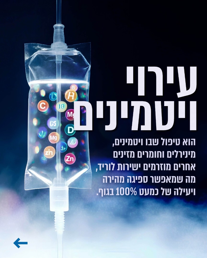 המעבר מזהות של הישרדות לזהות של שגשוג מתחיל בהבנה שהכלים הישנים כבר לא עובדים. מולטי-ויטמינים בבליעה, תזונה סבירה ושינה חטופה אינם מספיקים כדי להתמודד עם רמות הסטרס והשחיקה של העולם המודרני, בטח לא כשאתה שואף לביצועי שיא. כאן נכנסת לתמונה תפיסה חדשה לחלוטין של תחזוקה עצמית: עירויי ויטמינים לוריד. זהו לא טיפול רפואי לאנשים חולים, אלא טכנולוגיית ביצועים לאנשים בריאים שרוצים להיות מצוינים. ההבדל הוא תהומי. בעוד תוספים רגילים עוברים דרך מערכת העיכול ומאבדים אחוזים ניכרים מהיעילות שלהם בדרך, עירוי עוקף את המחסומים הללו ומזרים 100% מהרכיבים החיוניים ישירות למחזור הדם.