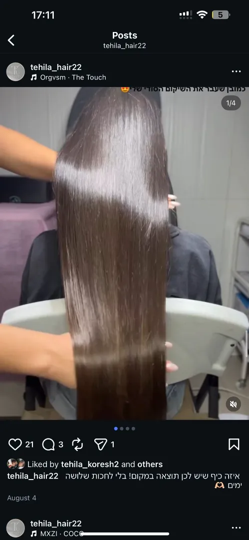 מי שמבינה בתחום יודעת שההבדל בין החלקה בינונית להחלקה איכותית הוא בבריאות השיער. בעוד טיפולים בסיסיים עלולים להשאיר את השיער יבש או "מקלות", ההחלקות של Tehila Hair מתמקדות בשיקום והזנה. התוצאה היא מראה טבעי, רך וגמיש ששומר על החיוניות שלו לאורך זמן. זהו הסטנדרט שמי שמכירה את ההבדל, לא מוכנה להתפשר עליו.